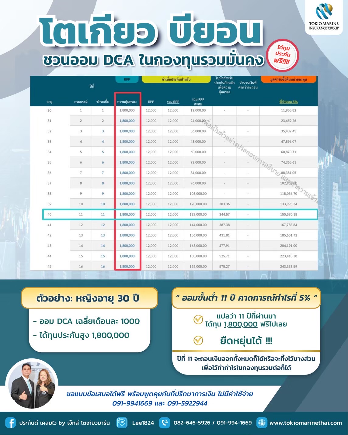 | 4. ค่าการประกันภัย (Cost of Insurance) | ขึ้นอยู่กับเพศ อายุ และจำนวนเงินเอาประกันภัย |